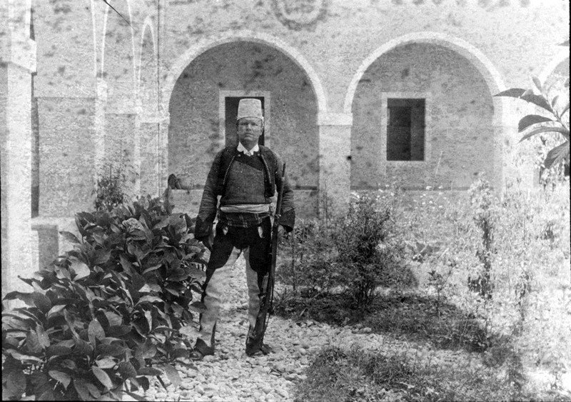 When the other participants in the expedition arrived in Shkodra, I joined them on their journey southwards. We travelled to Lezha, from where I made a side trip to Vela with Dr. Kidrić. From Lezha, I travelled with Dr. Buschbeck and a German gentleman across the Fusha e Molungut to the old abbey of Rubik, now inhabited by the Franciscans, the history of which has been recorded by Milan von Šufflay in the informative volume Illyrisch-albanische Forschungen (Illyro-Albanian Research) recently edited by Ludwig von Thallóczy. We spent Whitsuntide in Rubik. From the imposing and hospitable abbey situated on a mountain with a view into the distance, we carried on down the valley of the Fan river to where it flows into the Mat and, crossing the Mat, we reached Milot. I noticed on this part of the journey that the dialect of Mirdita is also spoken in the Malësia e Lezhës (mountains of Lezha) and stretches from Lezha to the Adriatic. From Milot we continued via Mamurras to the old residence of Scanderbeg, the splendidly situated settlement of Kruja with its natural springs. The dialect of Kruja is not entirely the same as the speech of Durrës and Elbasan described by Weigand and should be studied and recorded on its own. Unfortunately I had no time for this. From Kruja we rode through fertile lowlands covered in olive orchards to the beautifully situated town of the Toptanis, Tirana, which made a tremendous impression on us with its sumptuous and friendly Muslim homes and fair gardens hidden idyllically behind high, yet inconspicuous yellow walls…