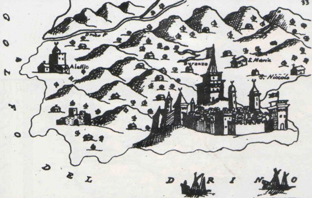 Durrës in a 17th century map by Vincenzo Maria Coronelli.