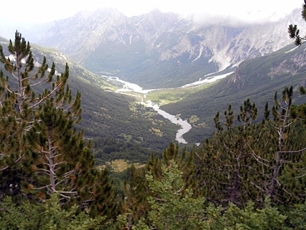 Wir überquerten zuerst einen 2000 m hohen Paß an der Grenze zwischen Montenegro und Albanien, welcher zu dieser Zeit unter einer sieben Meter hohen Schneeschicht begraben lag. Auf den vereisten Hochflächen des Gebirges fegte ein Schneesturm dahin, der einem den Atem gefrieren ließ. Nach fünfzehnstündigem Marsch trafen wir im schmalen Hochtal von Theti [Theth] ein, wo ich bei einem mir bekannten Albaner gastfreundliche Aufnahme fand. Von dort zog ich fast drei Wochen lang kreuz und quer durch die tief verschneite Gebirgslandschaft, oft ohne Weg und Steg. Bei dieser meiner Wanderung erfuhr ich, daß der Führer der dortigen Partisanen, in Stärke von etwa dreitausend Mann, der Albaner Nik Sokol war. Bei seinem Stabe sollte sich auch ein englischer Offizier befinden. Das Hauptquartier liege im felsigen Teil des Curraj, in Nikaj-Mertur. In den Felsen über diesem Ort hätte Nik Sokol seinen “Adlerhorst“.