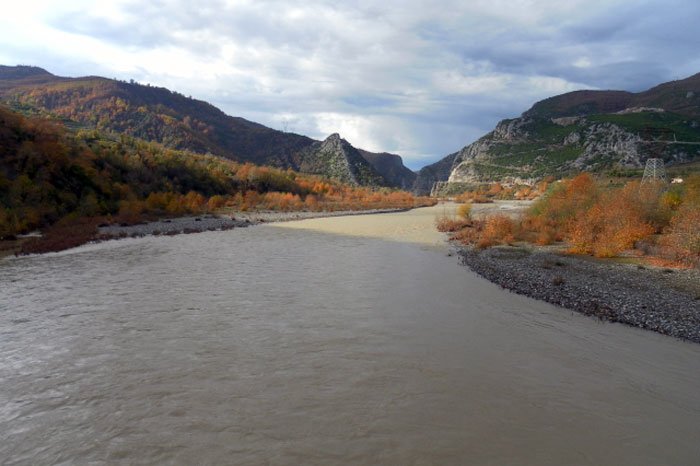 The valley of the Chkoumbé [Shkumbin] river, the southern bank of which we reached, is spectacular. The bottom of the valley is hardly much wider than the river itself, the murmuring of which we could hear. The hillsides on the two sides rise to considerable heights. They were veritable mountains, the terraced slopes of which were covered in forests with clearings. The views were impressive. We crossed the river on a bridge and, half an hour from there, on the other bank we came across a little village of 20 houses called Kyoùkos [Qukës], with two hans and a guard station of zaptiehs.