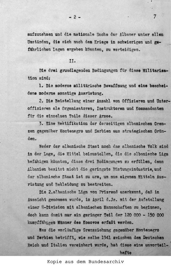 With regard to the provisional border with Montenegro and Serbia, as agreed in 1941 between the German Reich and Italy, it is disadvantageous for Kosovo not only from a purely strategic perspective but also for demographic and historical reasons.