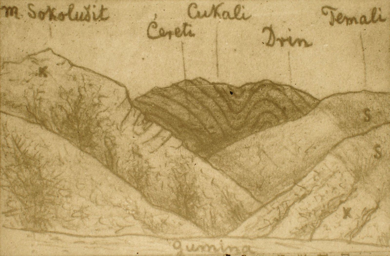 Zwischen dem Jahr 1903 und dem ersten Weltkrieg hielt sich der ungarische Gelehrte und Albanologe, Franz Baron Nopcsa (1877-1933), des öfteren in Albanien und der Region (Bosnien, Kosovo, Mazedonien, Serbien) auf. Auf seinen zahlreichen Reisen in die rauen nordalbanischen Berge nahm er nicht nur sein Gewehr, sondern auch seine “Kodak” mit, und machte damit seltene und faszinierende Fotos von der Region. Die Glasplatten der Originalaufnahmen werden im Ungarischen Naturgeschichtlichen Museum (Magyar Természettudományi Múzeum) in Budapest aufbewahrt.