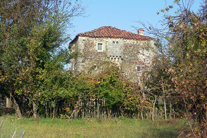 Seeing a chestnut tree close by the house, I enquired whether any were found at Castagneti, the place where we were to have passed the previous night. Don Nicola answered that there were several there, and that, as I had supposed, the name of the village was almost certainly derived from the Italian name for the tree. It is one of many instances of the way in which words and names in that language have filtrated into the Albanian; thus prift, the Albanian for “priest,” comes undoubtedly from that source, and our host’s surname had distinctly an Italian sound. Speaking of Castagneti he also told us that in the neighbourhood of that place is the site of Castri, the birthplace of Scanderbeg, from which he derived his name of George Castriote.