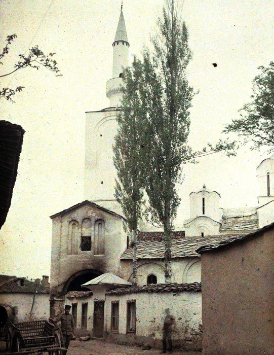 The next day we continued to ascend the Drin until it makes a bend to the north in the direction of Ipek; here we left it, and crossed some low hills that descend from the mountains, near which is the village of Djuri [Zhur], the first place surmounted by a minaret which we had seen since leaving Scodra. So completely had we been in Christian lands, and so different is the condition of the Mirdites from that of the other Christians of Turkey! From the foot of these hills the wide plain slopes gradually upwards towards Prisrend, backed by the mighty range of Scardus, which appeared close at hand in one long line, though its summits were shrouded by the clouds. At last the city itself became visible—first, the castle on a buttress of Scardus, with the houses of the Christian quarter creeping up its side; and afterwards the wide extent of buildings which cover the lower ground, from among which the spiry forms of twenty minarets rise conspicuous.