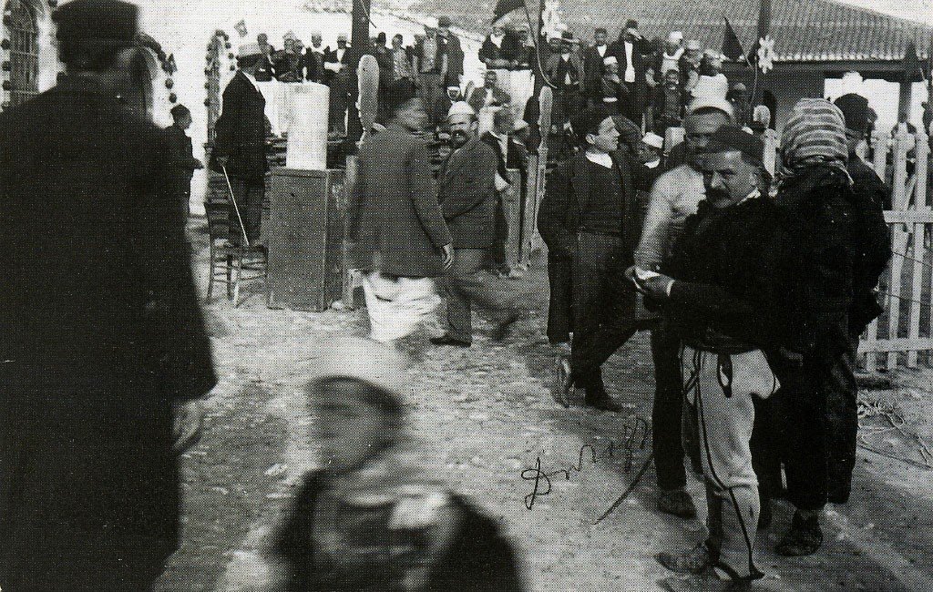 Der italienische Diplomat und Politiker, Antonino Paternò-Castello, sechster Marchese di San Giuliano (1852-1914), wurde im sizilianischen Catania geboren. Er studierte Jura und wurde ins italienische Parlament gewählt. Vom Dezember 1905 bis Februar 1906 war er für kurze Zeit italienischer Außenminister. In den Jahren 1906-1910 war er Botschafter in Frankreich und Großbritannien und kehrte im April 1910 nach Rom zurück, wo er wieder Außenminister wurde. Die auswärtige Politik seines Landes leitete er bis zu seinem Tod im Oktober 1914. An Albanien war der Marchese di San Giuliano stets interessiert und sprach sich 1912 entschlossen für die Unabhängigkeit des Landes aus. Die Wahl des deutschen Prinzen Wilhelm zu Wied zum Fürsten des neuen Landes begrüßte er und nahm an den dramatischen Ereignissen in Albanien im Frühjahr 1914 lebhaft teil. Der Marquis di San Giuliano war ein leidenschaftlicher Sammler von Fotos und Ansichtskarten. Die Aufnahmen in dieser Sammlung hatte er ursprünglich meist in Form von Ansichtskarten erworben und schickte sie eine nach der anderen als Andenken an seine verwitwete Schwiegertochter, Maria Paternò-Castello, Marchesa di Capizzi (1881-1936), die sie zum Glück bewahrte. In den späten 1970er Jahren wurde die Sammlung vom italienischen Diplomaten Ferdinando Salleo (geb. 1936) auf dem Flohmarkt in Palermo entdeckt und erworben. Sie wurde darauf von Professor Giuseppe Giarrizzo (geb. 1927) der Universität von Catania in dem Band Diario fotografico del Marchese di San Giuliano (Fotografisches Tagebuch des Marchese di San Giuliano), Palermo 1984, und von Salleo selbst in dem Buch Albania: un regno per sei mesi (Albanien: Königreich von sechs Monaten), Palermo 2000, veröffentlicht. Es handelt sich um eine einmalige Dokumentation der kurzen Herrschaft von Prinz Wied in Albanien.