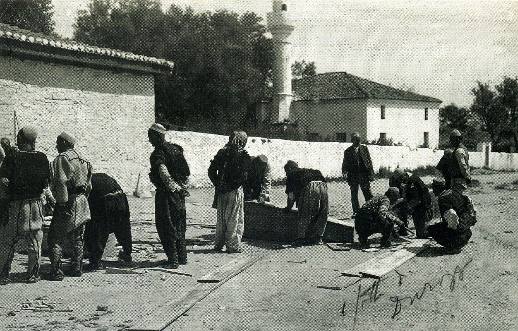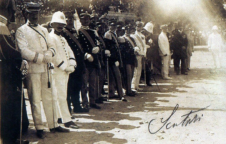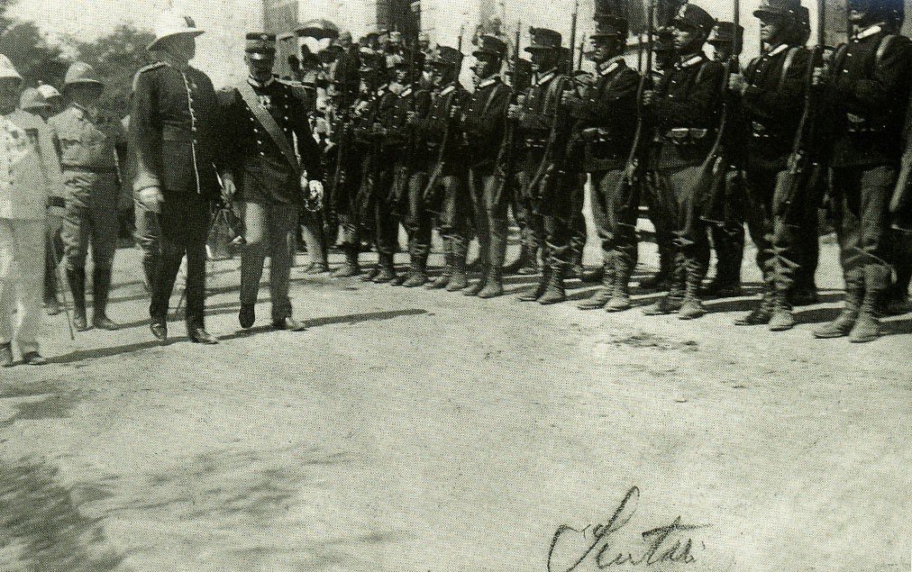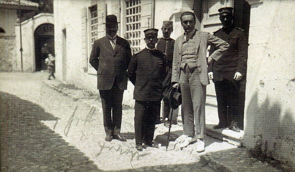 The Italian diplomatic and political figure Antonino Paternò-Castello, the sixth Marchese di San Giuliano (1852-1914), was born in Catania in Sicily. He studied law and was elected to the Italian parliament. He served briefly as Italian minister of foreign affairs from December 1905 to February 1906. From 1906 to 1910 he was ambassador to France and Great Britain, and in April 1910 he returned to Rome. The Marchese di San Giuliano held the position of Italian foreign minister in the politically turbulent years from then until his death in October 1914. He had a particular interest in Albania and in promoting Italian interests there, and showed resolute support for the country’s independence in 1912. He welcomed the choice of Prince Wilhelm zu Wied as the Balkan country’s new monarch and was an active observer of events in Albania in the spring of 1914. The Marquis of San Giuliano was also an avid collector of photos and postcards. The photos in this collection were originally acquired for the most part in postcard form and sent one after the other to his widowed daughter-in-law, Maria Paternò-Castello, Marchesa di Capizzi (1881-1936), who fortunately preserved them. In the late 1970s, the collection was discovered at the flea market in Palermo and purchased by the Italian diplomat Ferdinando Salleo (b. 1936). It was published by Prof. Giuseppe Giarrizzo (b. 1927) of the University of Catania in the volume Diario fotografico del Marchese di San Giuliano (Photographic Diary of the Marchese di San Giuliano), Palermo 1984), and by Salleo in Albania: un regno per sei mesi (Albania: Six-Month Kingdom), Palermo 2000. The collection offers a unique glimpse at Albania during the short reign of Prince Wied.