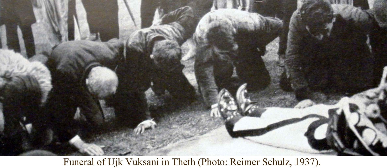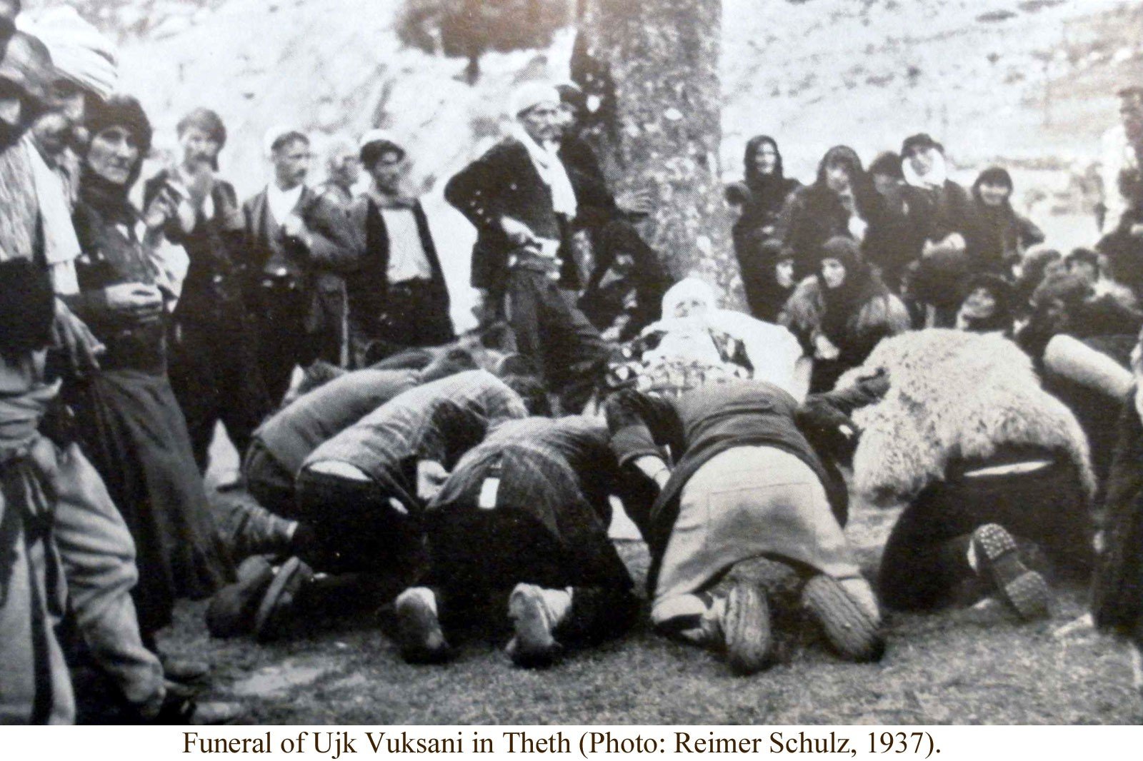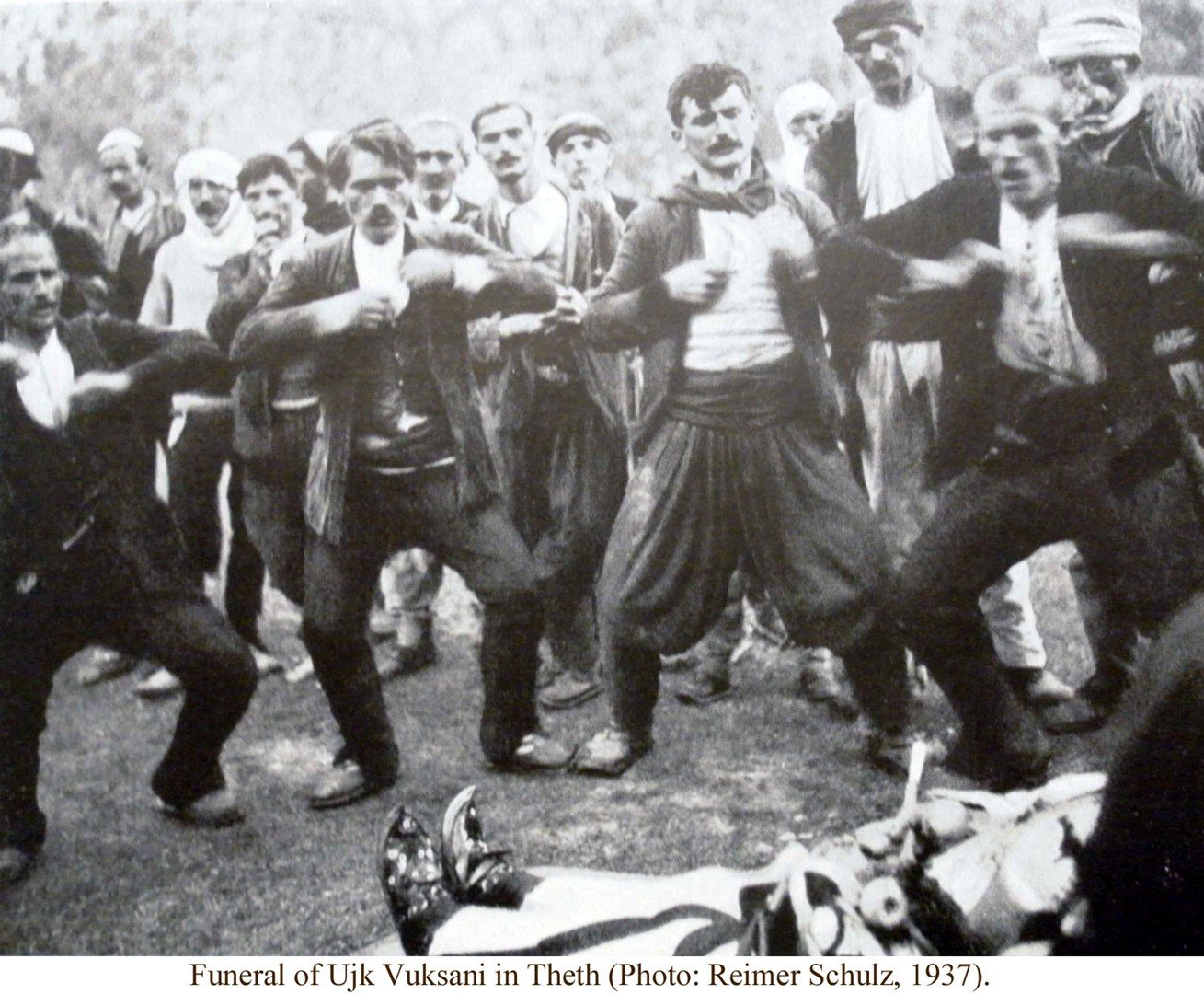 Dr Reimer Schulz (d. 1941) was a German anthropologist. Like his American counterpart Carleton Coon (1904-1981) in 1929- 1930, he carried out research in physical anthropology in the mountains of northern Albania. In 1937, Schulz took part in a German-Italian expedition to Theth in the Shala Valley on behalf of a so-called Thuringia Institute for Racial Studies (Thüringisches Landesamt für Rassewesen) in Weimar. During a longer stay in Theth, he measured body shapes and sizes and noted the physiognomic particularities of the natives for an academic discipline called anthropometry that – then strongly infiltrated by fascist ideology – was soon to fall out of fashion. In the course of his research in Shala, Schulz also took over two hundred photographs of school children and other pictures. These photos are said to have ended up in an archive in Halle, but may have been destroyed during the Second World War. What he did leave us at any rate are several spectacular photos of a traditional funeral in Theth that he published in the Leizpig periodical Atlantis (vol. 10, 1938, p. 257-259). Reimer Schulz had intended to complete his anthropological research with a second trip to Theth and had begun learning Albanian, but the Second World War intervened. He died as a soldier on the eastern front on 14 July 1941.