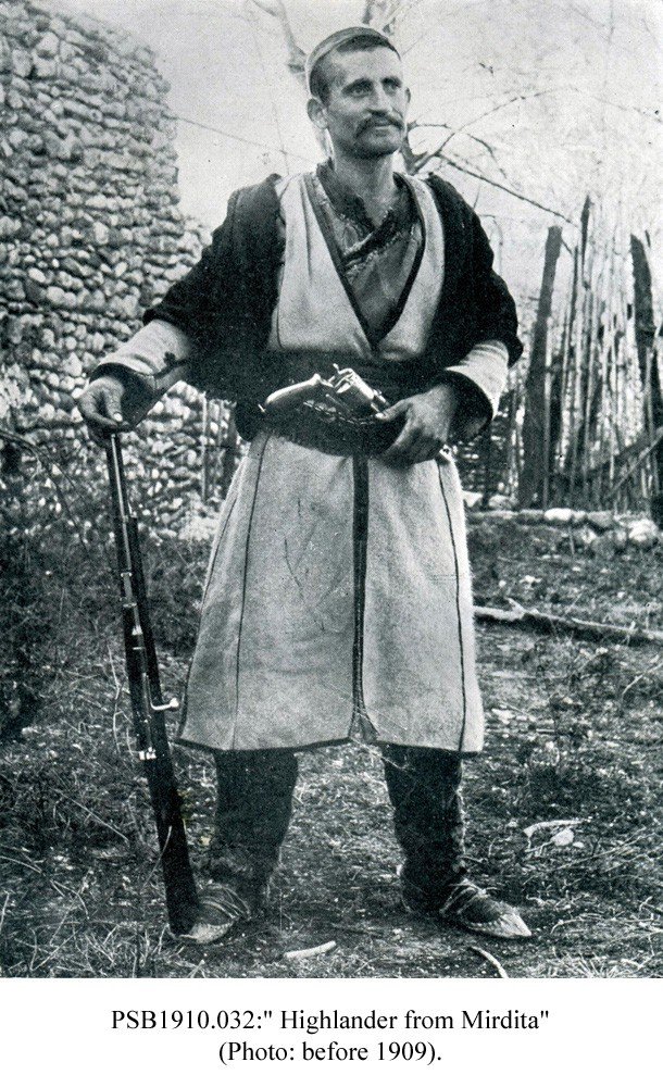 The German journalist and author, Paul Siebertz (1877-1954), was editor-in-chief of Das Vaterland (The Fatherland), “newspaper for the Austrian monarchy” published in Vienna from 1907-1911, and was the author of a number of book publications. In 1909, he undertook  a trip through the mountains of northern Albania  and soon thereafter published the volume Albanien und die Albanesen: Landschafts- und Charakterbilder (Albania and the Albanians: Landscape and Character Pictures), Vienna 1910, from which the present photo collection is taken. Most of his pictures, probably all of them, were taken from other sources.