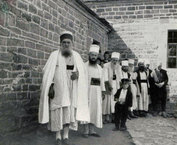 Bektashi clergymen at a teqe (dervish lodge) on the way up to Mount Tomor, Albania(Photo: Erich von Luckwald, ca. 1936 — see Albanian Photography | Luckwald Photo EVL 102).