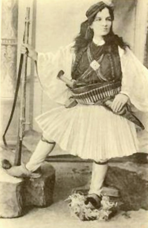Once upon a time there was a man who had three daughters. When the king called up soldiers for the war, the man had no sons to send. As he sat and pondered what to do, his eldest daughter approached him and inquired, “What are you thinking about, father?” He answered, “Leave me alone, daughter. The king has called up soldiers to go to war and I have no sons. I only have you whom I can’t send to war.” To this she replied, “Marry me to someone!” Later the second daughter gave the very same answer. The youngest daughter, however, replied, “Don’t worry, father, I’ll go to war. Have a uniform made for me and cut off my hair so that no one will know that I am a girl. Then give me your horse and weapons.” Her father did as she had requested and she set off with the other young men of the village. Everyone who saw the new young man was surprised. And so they departed.