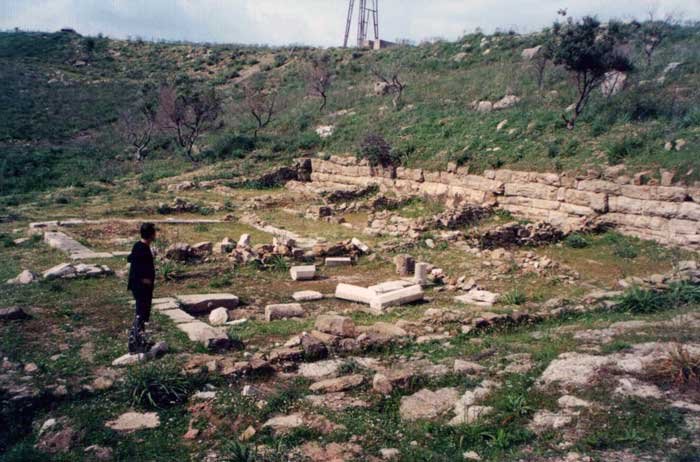 Between the walls of the ancient town and the modern houses of the Liméni, Skala, or Skáloma, are the remains of a suburb of the ruined town, and close to the houses of the Skala those of a large church, which has long been in ruins, but still retains the name of its saint, St. Basil. On its southern side are the ruins of a smaller church of the same date, sacred to St. Nicolas.