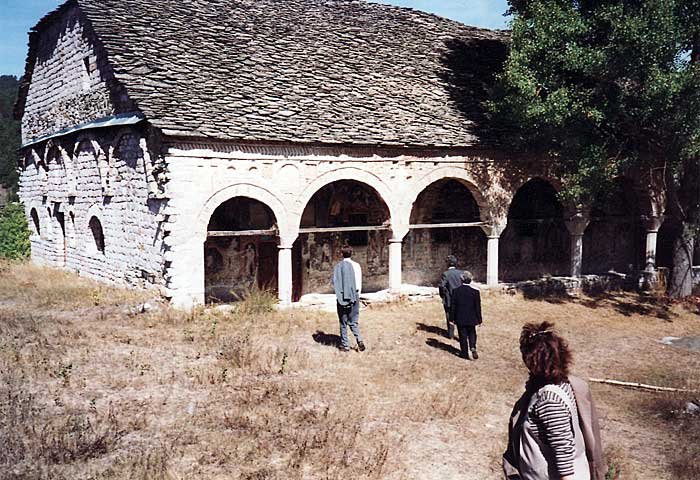 Λάμποβος, vulgarly pronounced Liábovo, according to the guttural sound of the l in Albanian, is situated not far below one of the highest summits of the range, but in a situation where a more gradual slope than that which we ascended admits of space for the scattered houses of the village, and for some vineyards and fields of kalambókki. It is entirely Christian, and there are eight or ten churches, besides those in the detached quarters, for, like the larger Albanian villages in general, Lábovo consists of several detached makhalás. They suffered last year from a deficient harvest, and derive no advantage from being near Tepeléni, as the Vezír Alý, when he visits his native place, calls upon Lábovo among other neighbouring places to furnish him with provision for his household, particularly eggs, poultry, and wood. On the summit of the ridge above Lábovo stands Tjaiúbe, in a situation so exposed to storms, that it is necessary to pile stones and earth upon the roofs to prevent them from being blown away, although composed of heavy masses of stone. From a peak of this ridge, called Strakavétzi, the monastery of Aghio Naúm, near Bitólia, is said to be visible.