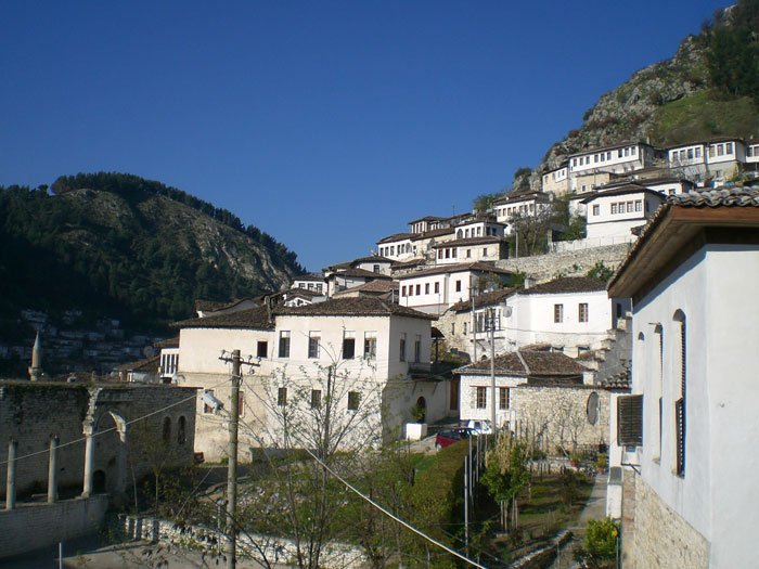 Berát, in vulgar Greek τὸ Μπεράτι, is named by the writers of the Lower Empire Βελάγριτα, or Βελέγραδα, which latter is still the title of the bishopric. It is nothing more than the Greek form of the same Sclavonic word, Beligrád (white fortress), of which Berát is the Albanian corruption. The name shows that the place was a part of the Bulgarian conquests, and long in possession of that people.