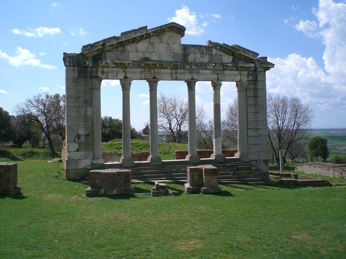 The Hellenic remains in the castle wall, and their situation on a precipitous height overhanging the river, at the entrance of a valley leading from the plains of Illyria into the strongest parts of Epirus, afford indubitable proofs that Berát stands on the site of an ancient city of some importance. But there is no evidence in history sufficiently precise to afford any certainty as to its name. The probabilities are in favour of Antipatria, which was certainly hereabout, and is described by the historian [Livy] as a great city strongly fortified, and situated in a narrow pass. It was taken in the year B.C. 200, by L. Apustius, who was detached by the consul Sulpicius from his camp in the neighbouring plain, with directions to lay waste the Macedonian frontier. In strictness, indeed, this country was a part, not of Macedonia, but of Atintania, Dassaretia, or Illyria; but nothing is more likely than that the kings of Macedonia had added it to their dominions when their power was at its height, in the ages preceding the Roman wars, and when a new name may have been given to this place in honour of Antipater.