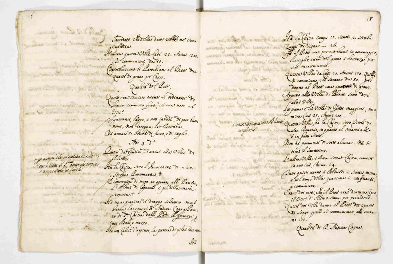 Having left Zuppa, we arrived at the village of Molini. There is a church here dedicated to Saint Blasius. As to its material condition, some of the walls are on the verge of collapse and would require 20 scudi. It has a chasuble and overlay stole and a maniple. There is a silver chalice and paten and a new missal, all of which were supplied by the Holy Congregation. The Eucharist is not held here. Of the above-mentioned valuables, the bishop erroneously took 30 paoli. Don Antonio Teodori serves here, who takes care of the above-mentioned items. The church has a mill that functions in winter and summer and from which the priest derives his bread. There is a 25-row vineyard that produces copious amounts of wine. There are six arable fields but they are rocky and infertile. This village has 42 homes and 320 souls. They provide the priest with three quartarole [gold coins] of grain per household, partially in wheat and partially in minudi.