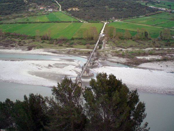 Lower down than Charamoutates, the Viosa passes the town of Permeti [Përmet], containing about 700 houses, and flowing through the defiles of Klissoura, forms its junction with the river of Argyro-Kastro, just above Tepeleni. The latter town, the birth-place of Ali Pasha, is situated on the western or left bank of the river, on a lofty peninsular eminence, formed by the junction of the Bentza [Bënça] and the Viosa. The great Seraglio of the Vizier, almost equal in extent to that of Ioannina stands on the brow of a rock, impending over the waters of the latter river. A large mosque is near to it; and below are the remains of a bridge, destroyed by the violence of the winter floods in the Viosa. This bridge has been broken down two or three times, notwithstanding many efforts of the Vizier to render it durable. It was last carried away by the floods in 1812; and no attempts have since been made to repair it. When I returned to Ioannina, Ali Pasha asked my opinion on the subject. I represented to him generally that I thought him too rapid in the execution of all such undertakings, and proposed at the same time, a bridge of boats, as being on the whole best adapted to the place. He said that this had before been suggested, but that he wished to erect some more durable monument of himself at the place of his nativity. He had been told, he added, by some European engineer, that it was impossible, but still was anxious to attempt it, should there be a chance of success.