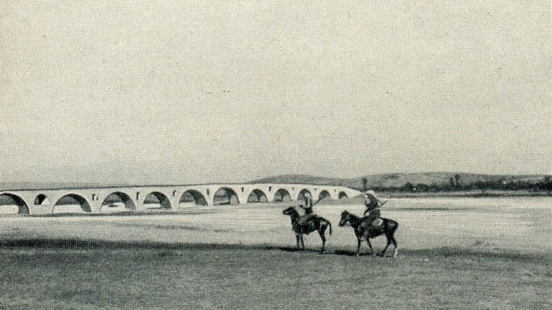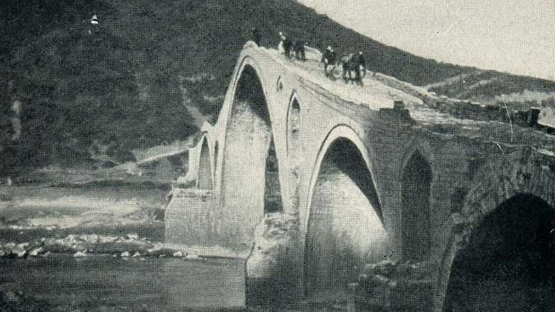 “From Kukës to Orosh: the famous Viziers’ Bridge over the Drin River” (Photo: Gabriel Louis-Jaray, 1909).